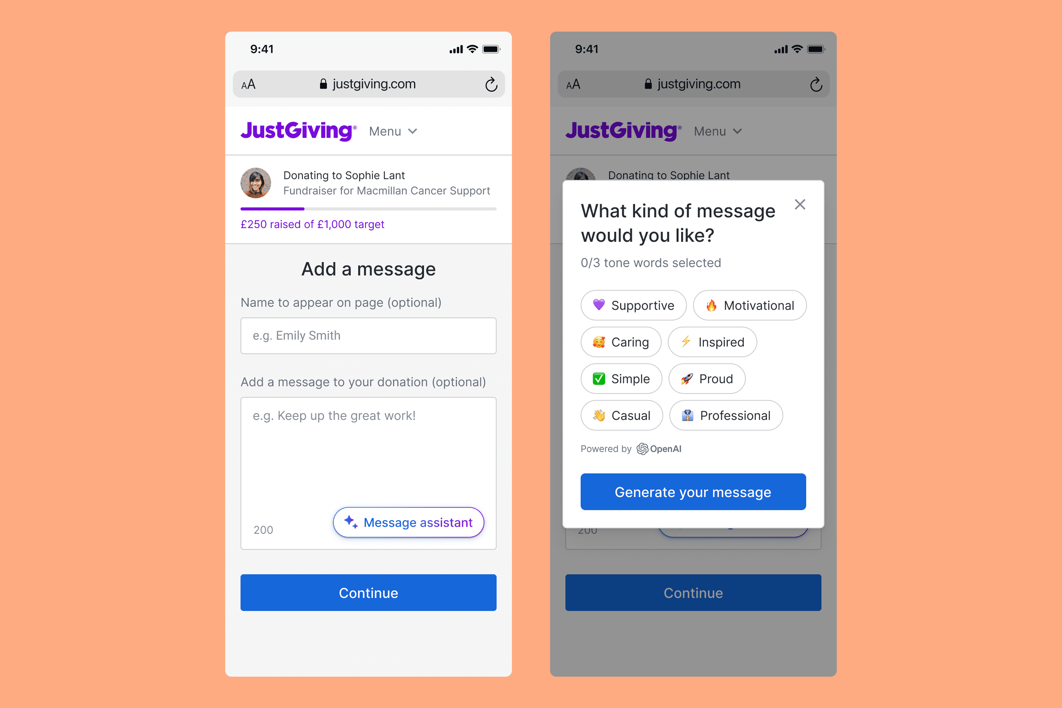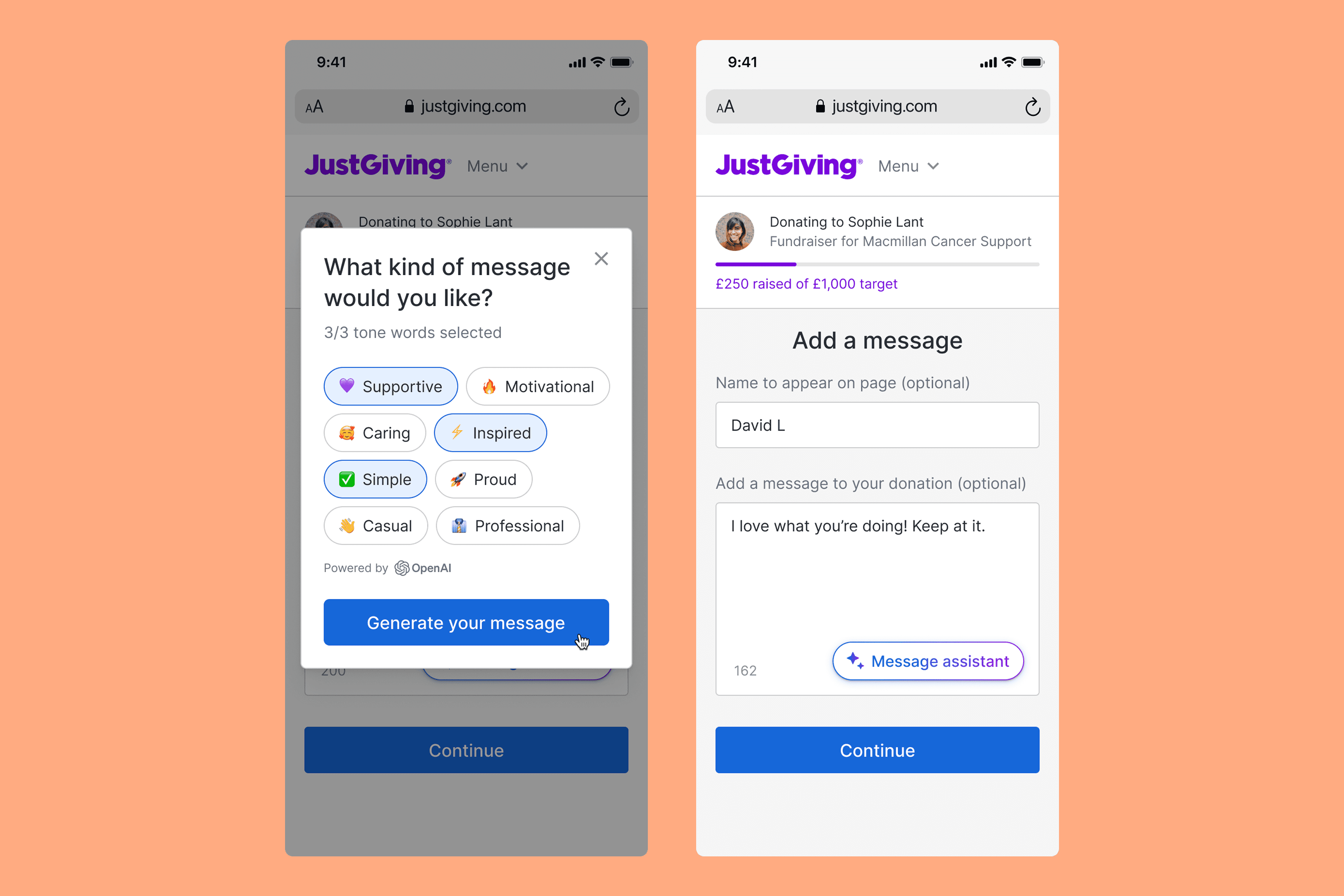 Donors love adding a personal touch to their contributions - it helps them feel more connected to the cause they're supporting. On JustGiving, we've always made that possible by allowing donors to include a personal message with their donation.